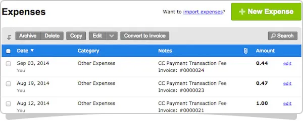 No more having to calculate transaction fees or manually enter them into your FreshBooks account. FreshBooks will automatically import and categorize transaction fees as an expense every time you get paid: